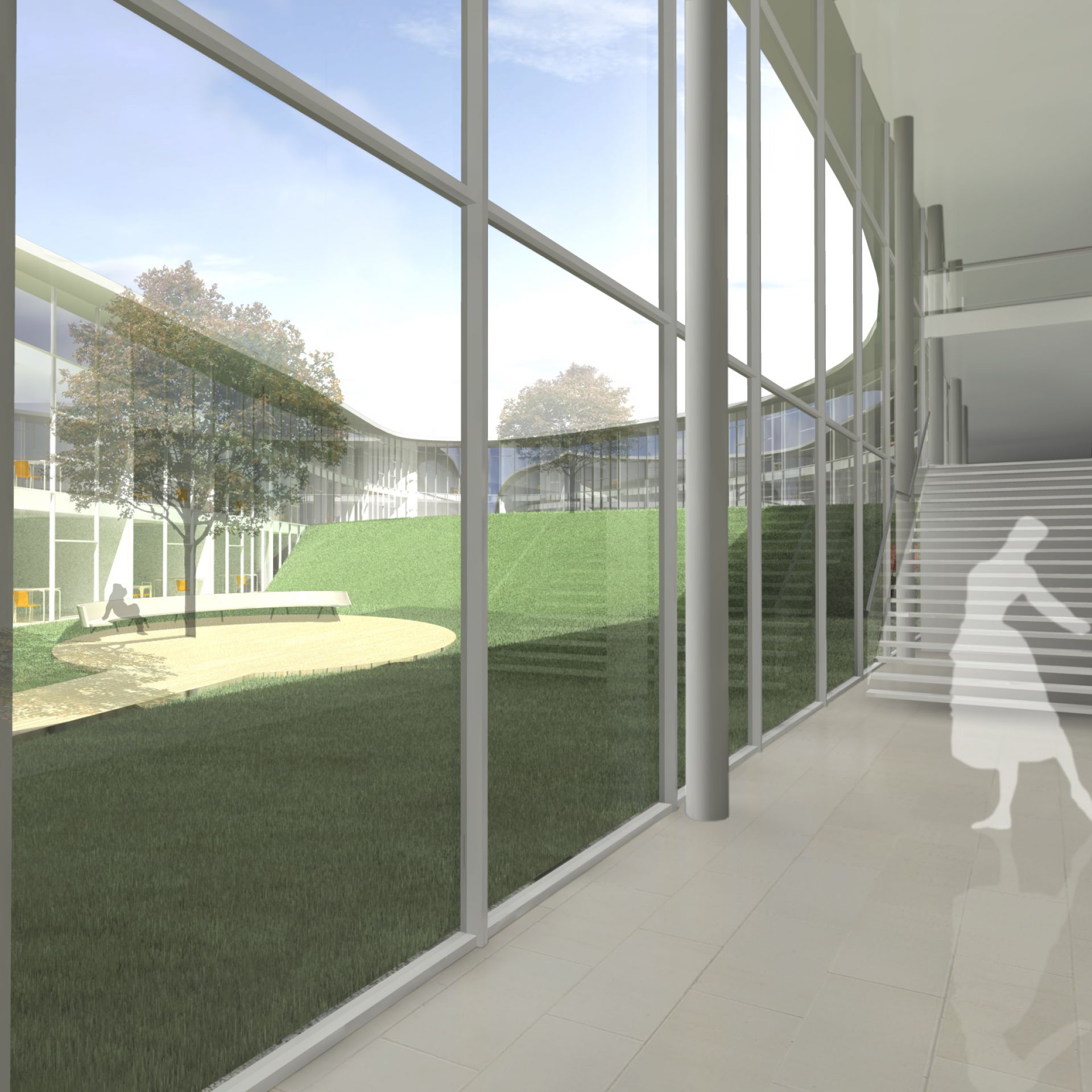 und ermöglicht spannungsvolle Ausblicke in das städtische Umfeld und insbesondere zum